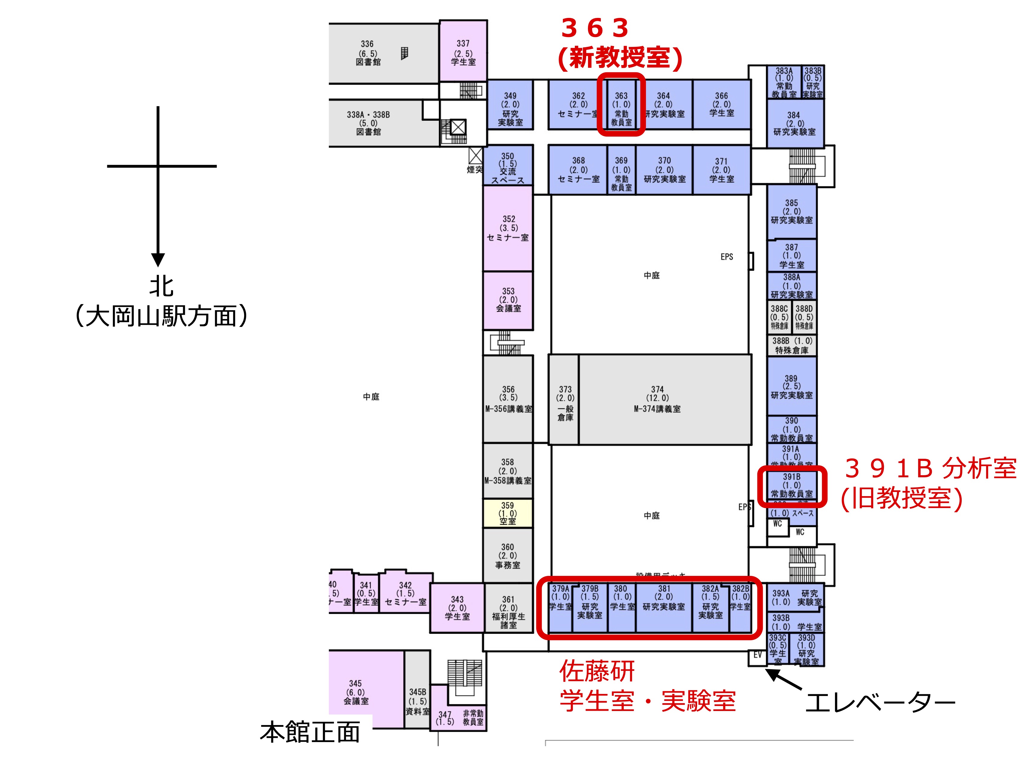 教授室が391B室から363室へ移動します。